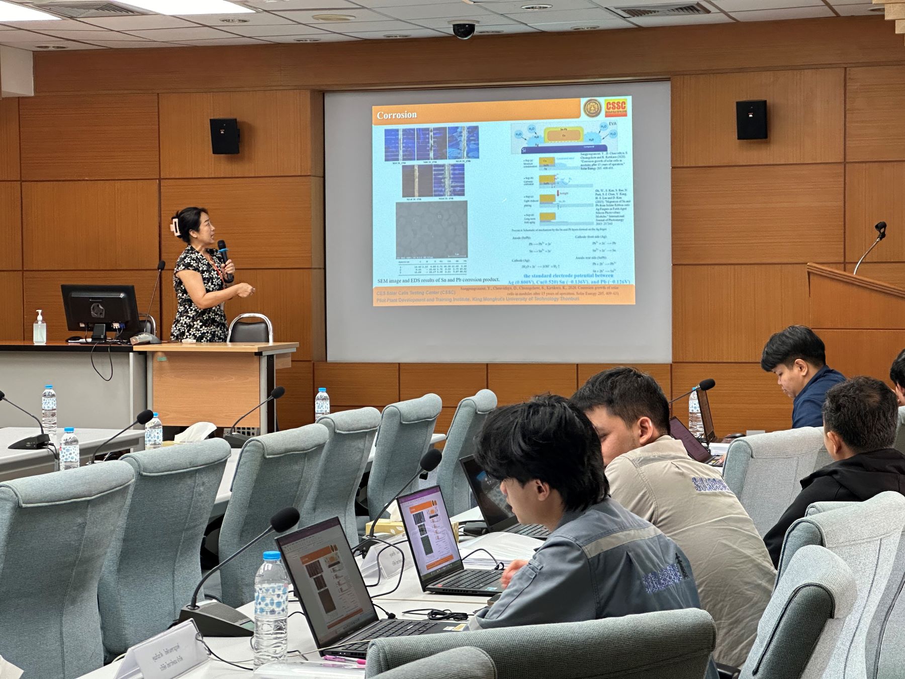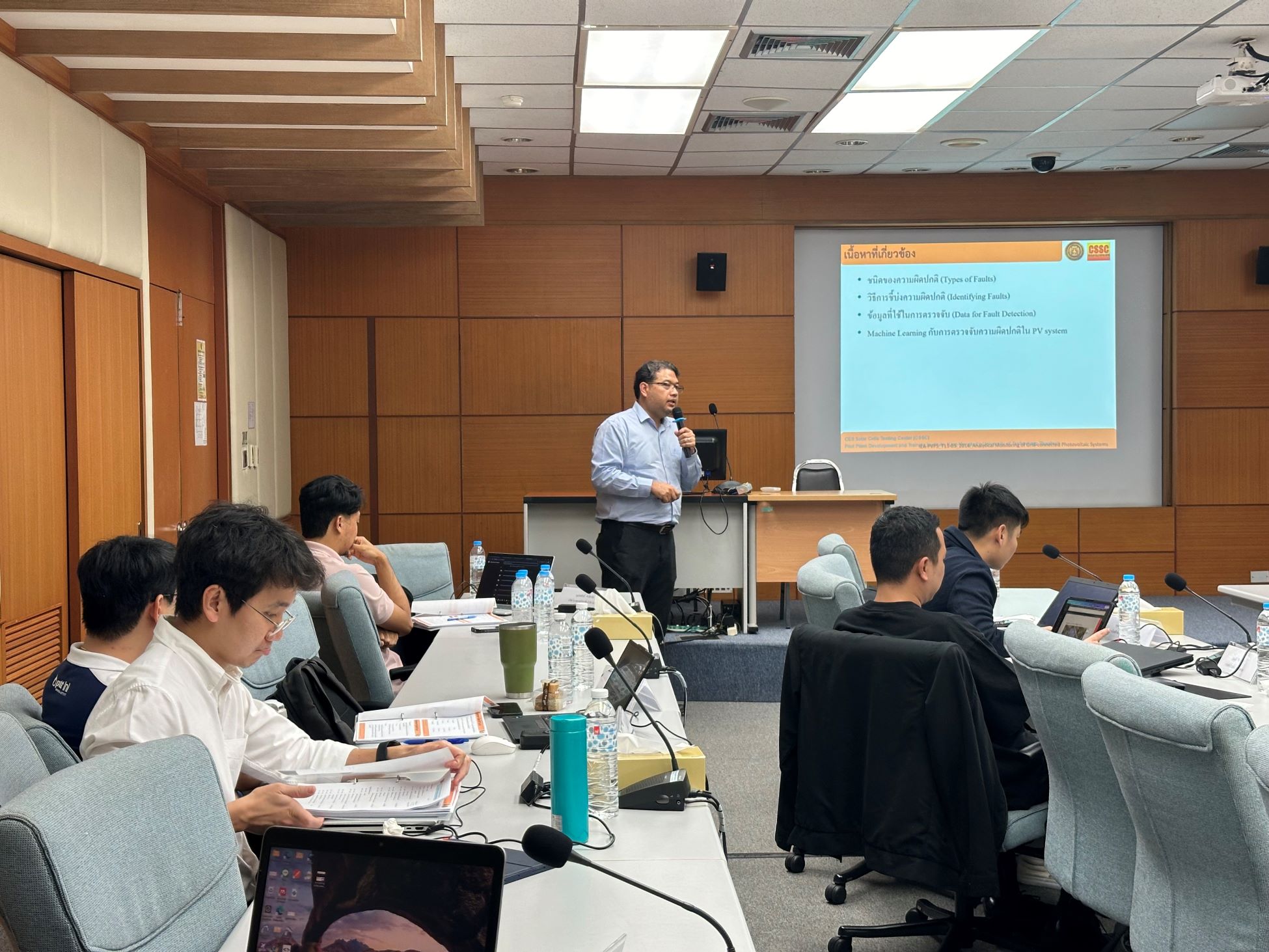 ศูนย์พัฒนามาตรฐานและทดสอบระบบเซลล์แสงอาทิตย์ (CSSC) สถาบันพัฒนาและฝึกอบรมโรงงานต้นแบบ (สรบ.) มหาวิทยาลัยเทคโนโลยีพระจอมเกล้าธนบุรี (มจธ.) จัดฝึกอบรมหลักสูตร "วิธีวิเคราะห์การเสื่อมสภาพและความผิดปกติของอุปกรณ์หลัก ในระบบเซลล์แสงอาทิตย์ รุ่นที่ 3 (Analysis and diagnosis of modules failure in PV systems)" ระหว่างวันที่ 11-12 มีนาคม 2568 ณ ห้องประชุมสัตตบงกช อาคารวิจัยพัฒนาและโรงงานต้นแบบ สำหรับการอบรมมีผู้สนใจเข้าร่วมอบรมทั้งจากหน่วยงานภาครัฐและเอกชน ในการอบรมผู้เข้าอบรมได้ร่วมกิจกรรมการฝึกปฏิบัติ และเยี่ยมชมห้องปฏิบัติการทดสอบมาตรฐานระบบเซลล์แสงอาทิตย์ CSSC